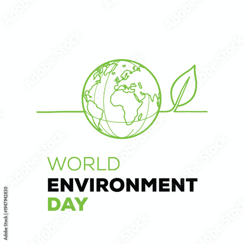 World environment day poster design with earth globe and green leaf in continuous line art style for ecology concept