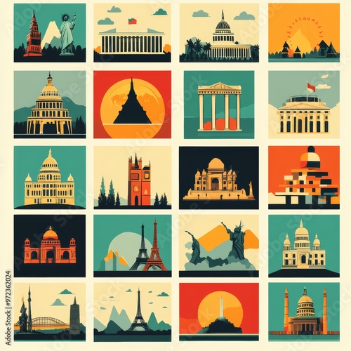 art, travel, design, inspiration, poster, adventure, famous, tour tourism, culture, landmark, illustration, journey, global, tour, vintage, globe, earth, map