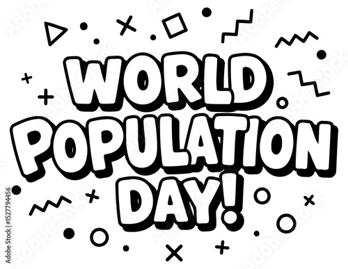 World Population Day graphic design with no people/demographics in a stylized. bold. and fun graphic design style.