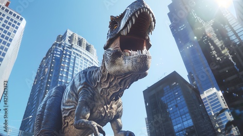 dinosaur, city, skyscraper, build, urban, tower, worm, eye, view, perspective, sky, life, light, point, ground, grey, king, drone, sleek, earth, park, live, time