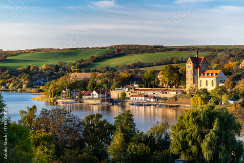 Wunderschönes Schloss Seeburg am Süßen See in hügeliger Landschaft