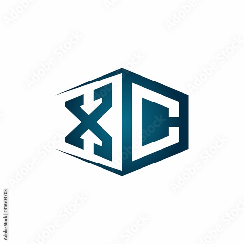 XC monogram logo with hexagon shape and negative space style ribbon design template