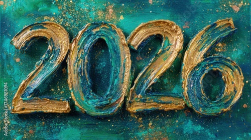 Year 2026: A bold artistic display features the golden numerals of the year 2026, elegantly presented against a textured background. The image is a testament to visual harmony.