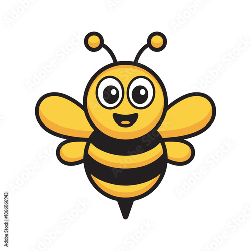 Yellow and black honeybee icon in simple flat design with clear outline on white background, ready for branding, logos, and educational graphics