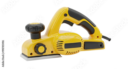 carpenter's shop, carpenter's shop, tool, yellow, black, hand-held, construction, equipment, instrument, machinery, workshop, bricolage, refurbishment, wood, material, cutting, shaping, smoothing, adjustable, knob, ventilation, grille, ergonomic, handle, isolated, studio shot, render, digital artwork