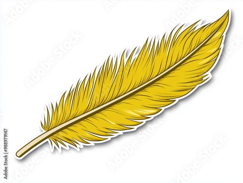Yellow feather, white isolate background