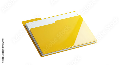 file folder, folder, yellow, paper, document, office supply, stationery, organisation, storage, archive, report, file, information, business, datum, binder, portfolio, cardboard, tab, sheet, blank, clean, glossy, studio, isolated, white background, graphic design, concept, minimalist, administrative, legal, financial, research, project, presentation