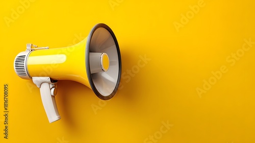 megaphone, yellow, communication, announcement, speaker, loudspeaker, voice, attention, marketing, promotion, alert, news, broadcast, protest, rally, message, advertisement, business, concept, icon, symbol, tool, equipment, plastic, handle, grill, simple, minimalist, bright, vibrant, clean, modern, graphic, design, studio, shot, isolated, object, nobody, horizontal, copy, space, background, empty, blank, template, banner, poster, web