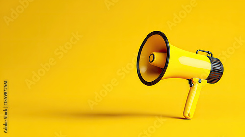 Yellow megaphone on solid yellow background, symbolizing clear and powerful business communication