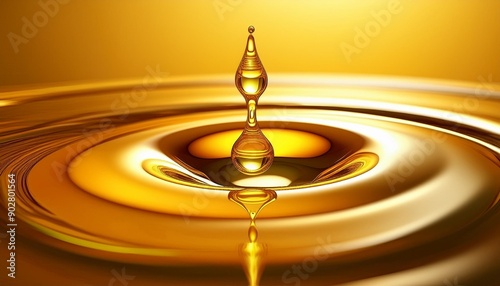 Yellow olive or sunflower oil liquid drop closeup background. Organic cosmetic splashing wave on golden surface texture, orange juice flowing, motor engine fluid smooth ripple