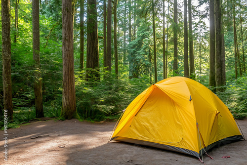 yellow, tent, forest, camping, nature, tree, wilderness, sunlight, adventure, greenery, timberland, travel, camp, shelter, hiking, backpacking, serene, calmness, exploration, shade, tall trees, natural, foliage, peaceful, environment, summer, bright, daytime, campground, recreation, dense forest, fresh air, forest floor, relaxation, canopy