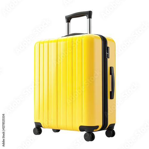 Yellow travel suitcase with wheels, isolated on a Transparent background
