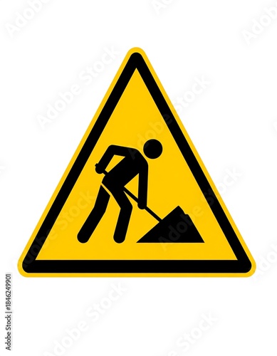 warning, signs, triangle, yellow, black, man, work, construction, roadwork, shovel, digging, symbol, caution, hazard, safety, traffic, street, site, men at work, silhouette, attention, road, area, zone, alert, danger, icon, graphic, illustration, vector, isolated, shape, mark, information, public, place, service, message, communication, signal, standard, official, government, authority, regulation, policy, protocol, guidance