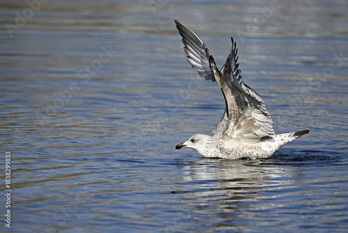 Yellow-legged gull (Larus michahellis), juvenile landing on the water, Switzerland