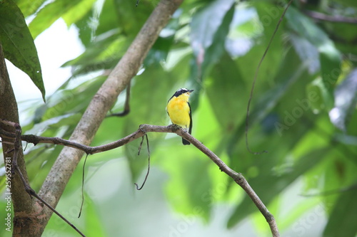 flycatcher, animal, asia, background, beak, beautiful, bird, tree branch, colours, colourful, environment, feather, green, jungle, malaysia, natural, nature, siam, tropical, wild, wildlife, yellow