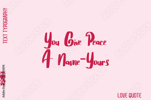You Give Peace A Name—Yours -Minimal Love Quote Modern Bold Cursive Text Lettering Design