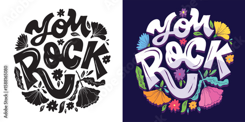 You rock - hand drawn doodle lettering. Lettering for t-shirt design, mug print, bag print, clothes fashion. 100% hand drawn vector image.