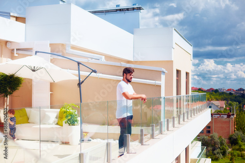 terrace, patio, roof, top, rooftop, balcony, family, people, man, life, lifestyle, living, luxury, private, building, home, house, relax, leisure, enjoy, happy, architecture, interior, exterior, young, adult, well-being, wealth, welfare, view, veranda, open, space, glasses, railing, design, modern, contemporary, floor, up, property, day, beautiful, summer, vacation, villa, rent, apartment, furnished, lounge