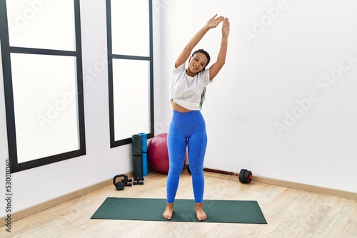 young, african, american, woman, female, girl, adult, person, braid, black, happy, happiness, confident, smile, lifestyle, expression, positive, smiling, enjoy, fun, fitness, fit, training, sport, sportswoman, sporty, activewear, exercise, physical exercise, body, healthy, health, care, gym, athletic, athlete, yoga, mat, stretch, stretching, center, club, gym, indoor, indoor, interior, room, background