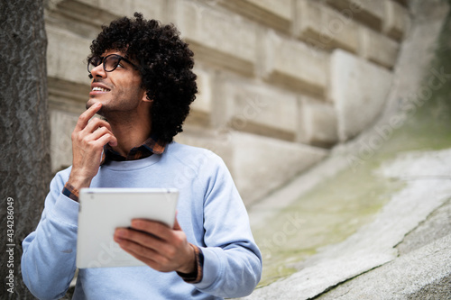 man, tablet, african, using, businessman, student, outdoors, eyeglass, business, digital, curly hair, technology, street, city, adult, learning, studying, young, smile, boss, cool, fashion, photogenic, urban, elegance, model, morning, cheerful, device, fun, happy, joy, lifestyle, african american, enjoy, mixed race, outside, copy space, happiness, smiling, hair, people, person, success, work, walking, town