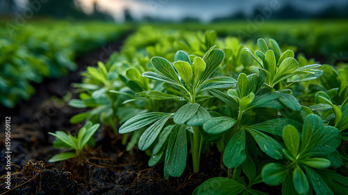 Young alfalfa sprouts thrive in a vibrant spring farm field showcasing lush greenery and healthy growth for agricultural use.