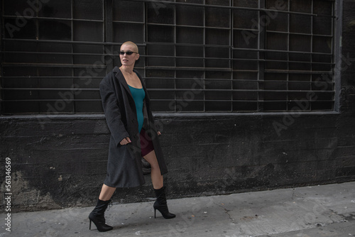 Young and Rebellious Citizen with Short Blonde Hair and Dark Glasses Roams the Back Alleys of Downtown Los Angeles.