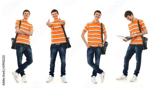 man, boy, teenage, children, education, school, university, male, 1, alone, attractive, beauty, beautiful, young, caucasian, emotional, isolated, white, background, standing, posing, happy, joy, cheerful, happiness, nice, fit, slim, thin, student, pupil, teenage, teenage, bag, schoolbag, laugh, smart, smile, brunette, lifestyle, childhood, children, cut-out, successful, blue, red, set, many, different, collection