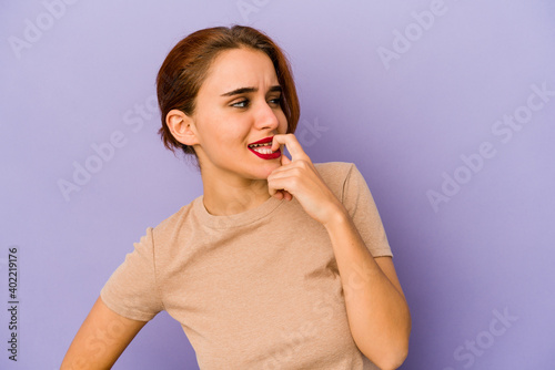 person, girl, female, isolated, portrait, woman, young, attractive, beauty, pretty, adult, cute, lifestyle, studio, white, casual attire, business, muslim, arab, indian, mixed race, purple, background, model, face, calm, carefree, cheerful, confident, contemplation, copy space, expression, happy, idea, imagination, inspiration, meditating, planning, pondering, problem, smiling, thinking, thoughtful, trouble