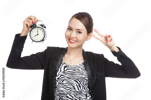 adult, alarm, alarmclock, appointment, asian, attractive, beautiful, business, businessman, casual attire, cheerful, clock, cute, female, girl, good-looking, happy, hours, isolated, lady, lovely, minute, person, portrait, punctual, smile, studio, suit, time, watch, white, woman, young, victory, hand, show, finger, 2