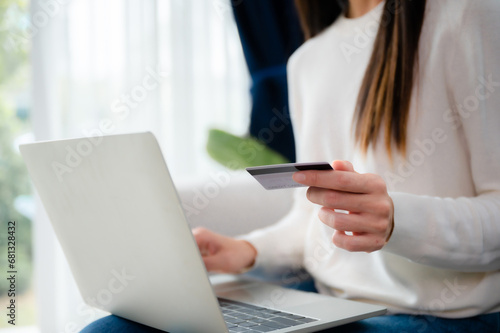 online, shopping, payment, credit, card, debit, money, cashless, finance, technology, woman, hand, holding, laptop, computer, notebook, asian, female, house, home, day, sale, buy, purchase, client, consumer, lady, girl, beautiful, young, adorable, gorgeous, cyberspace, electronic, banking, business, service, store, retail, pay, commerce, e-business, datum, smile, happy, person, people, ordering, lifestyle