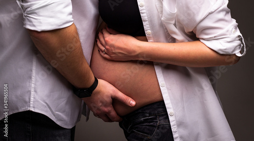 Young attractive couple: pregnant mother and happy father.Loving future couple expecting a baby.