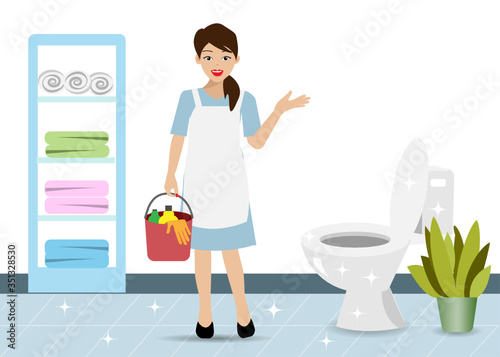 cleaning, privies, bathroom, service, cleanliness, hygiene, laundered, detergent, disease, floor, house, household, housekeeping, homemaker, anti, applying, area, bright, bubble, care, cartoon, equipment, foam, glove, health, holding, home, infection, liquid, maid, panel, people, prevention, protection, sanitary, scrub, shampoo, sponge, supply, vector, virus, wall, water, wet, wipe, work