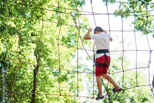 young boy, teenager, in a rope park, engage in extreme games, child development, boy hobbies