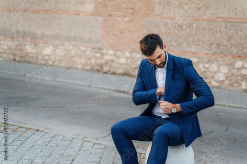 confident, young, street, adult, male, man, person, urban, city, photogenic, casual attire, caucasian, people, guy, style, lifestyle, blue, modern, portrait, happy, sitting, phone, travel, outdoors, attractive, 20s, beard, business, elegant, entrepreneur, holding, looking, man, message, mobile, 1, outside, professional, smart, smartphone, text message, standing, success, successful, suit, technology, texting, using, work