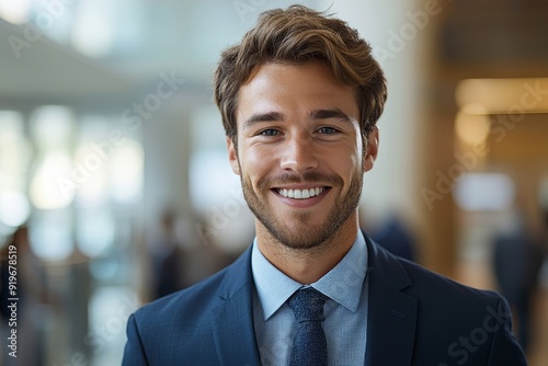 Young business professional smiling at camera, Generative AI
