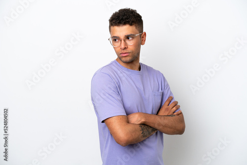 Young caucasian Brazilian man isolated on white background keeping the arms crossed