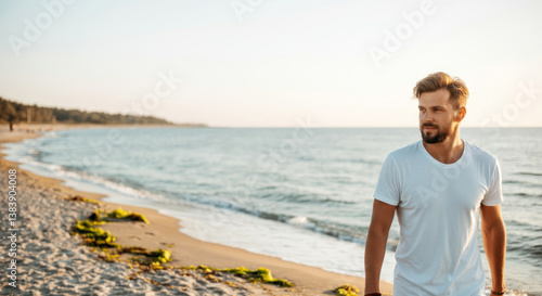 young, male, caucasian, beach, sunset, ocean, sand, nature, relaxing, walking, outdoors, shoreline, tranquil, casual attire, shore, summer, vacation, blond, horizon, peaceful, serene, sea, water, leisure, solitude, natural, coastal, environment, sunlight, scenic, idylli, coastline, blue, sky, journey, wanderlust, exploration, thoughtful, adventure, shirt, landscape, gold, light