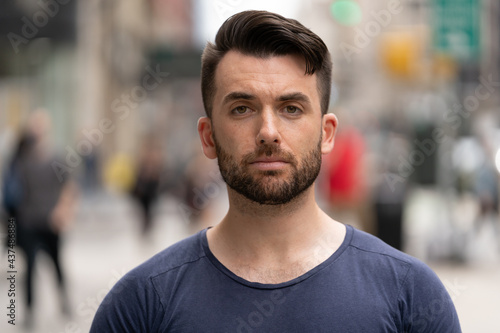 man, city, caucasian, street, urban, casual attire, beard, white, 20s, 30s, new york city, guy, male, people, serious, face, portrait, sad