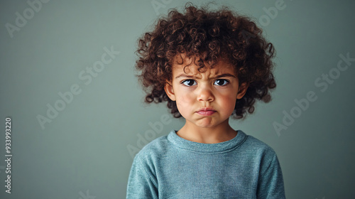 Young Child Deep in Concentration - Focused and Determined Expression in Playful Attire against Plain Background