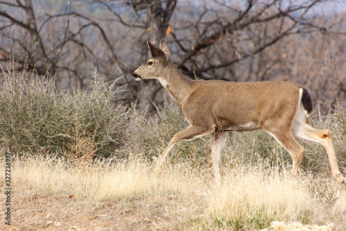 young deer walking in a field of dry grass