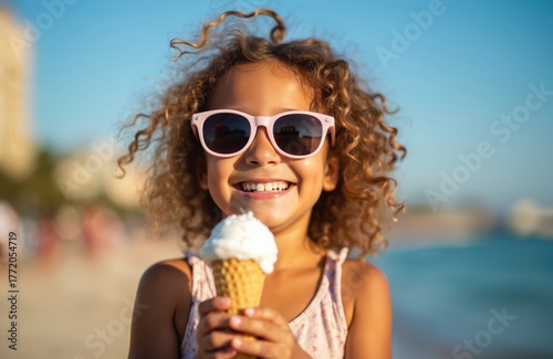 girl, children, children, ice cream, beach, summer, sunglasses, happy, joy, fun, vacation, holiday, sea, ocean, travel, food, dessert, cone, eating, sweet, childhood, leisure, sunny, day, small, youngster, people, person, cute, curly hair, ice, cream, tasty, delicious, sun, wave, blue skies, coast, shore, children, children, treat, refreshment, summer, lifestyle
