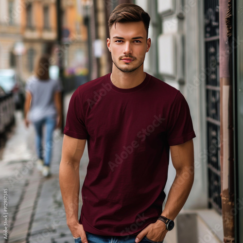 concept, style, business, shirt, fashion, guy, isolated, looking, person, work, men at work, smile, healthy, happiness, delicious, cheerful, epicure, freshness, design, bright, job, 1, single, service, showing, caucasian, positivity, latin, eastern, attractive, beard, photogenic, boy, gesture, modern, portrait, people, elegance, t-shirt, colours, happy, background, adult, male, young, man, maroon, ai