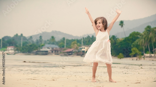 Young happy girl in white dress