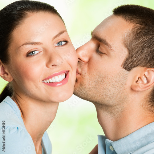 Young happy smiling attractive couple, outdoors
