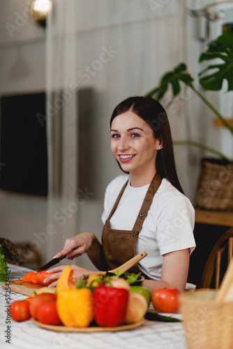 Young Healthy woman cooking healthy food in the kitchen at home. Healthy lifestyle, food, diet concept.