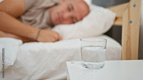 Young hispanic man lying on bed sleeping at bedroom