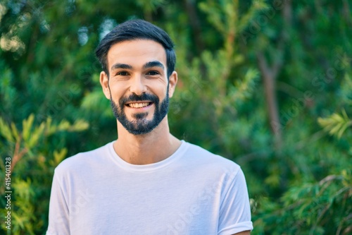 adult, attractive, background, beard, casual attire, cheerful, city, confident, cool, enjoy, expression, face, fun, funny, green, guy, photogenic, happiness, happy, healthy, hispanic, joy, lifestyle, male, man, model, modern, natural, nature, outdoors, park, people, person, portrait, positive, relax, smile, smiling, racked, standing, street, style, summer, sunlight, town, urban, walk, walking, young