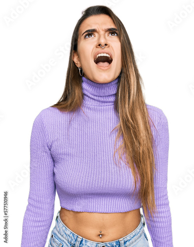 Young hispanic woman wearing casual clothes angry and mad screaming frustrated and furious, shouting with anger. rage and aggressive concept.
