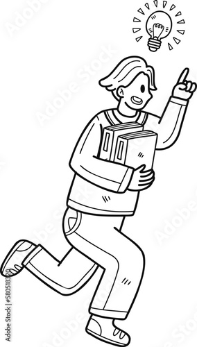 Young male businessman running to success illustration in doodle style