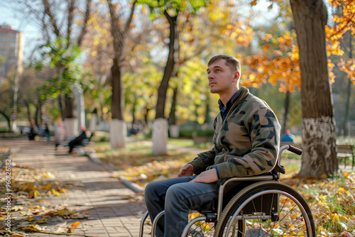 man, wheelchair, autumn, park, contemplation, fall foliage, outdoors, sunlight, young men, disability, autumn color, nature, leaf, tree, sitting, thoughtful, peaceful, serene, golden hour, inclusive, mobility, diversity, day, warm colors, health, freedom, forest, beauty, relaxation, sunny day, independence, autumn leaf, sunny, warm light, seasonal, empowerment, open air, fall